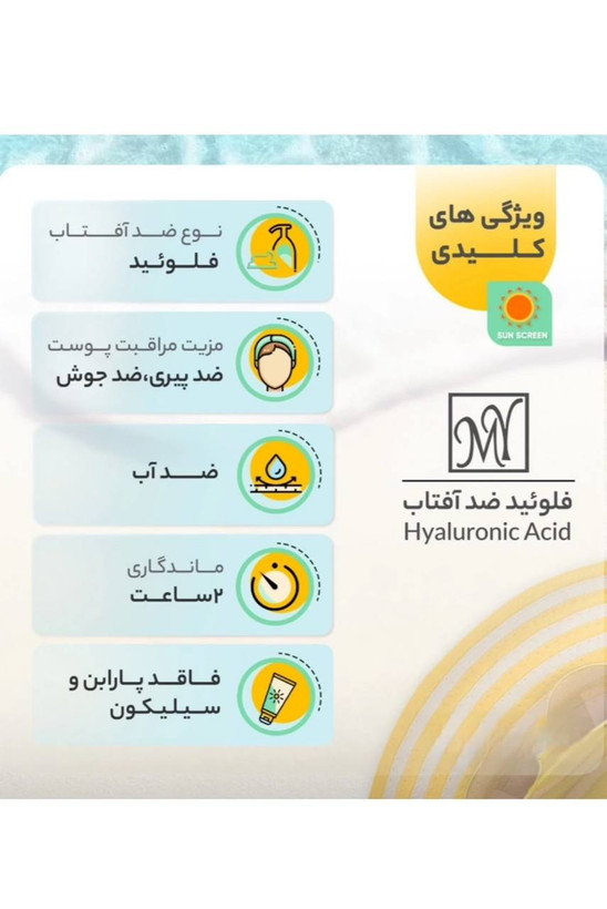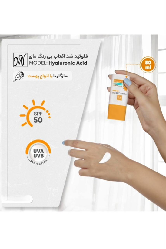 اگر به دنبال یک ضدآفتاب عالی و موثر هستید که بتواند به خوبی از پوست شما در برابر اشعههای مضر آفتاب مراقبت کند، فلوئید ضد آفتاب بیرنگ مای SPF50 مدل Hyaluronic Acid انتخابی بینظیر است. این محصول با ترکیبات خاص خود، به راحتی جذب پوست میشود و احساس سنگینی به پوست نمیدهد. یکی از ویژگیهای برجسته این محصول، هیالورونیک اسید است که به مرطوبسازی و حفظ رطوبت پوست کمک میکند. علاوه بر این، SPF50 حفاظت بسیار بالایی در برابر پرتوهای UVB و UVA فراهم میکند. این فلوئید ضد آفتاب مناسب انواع پوست است و با حجم 50 میلی لیتر، میتوانید مدت زمان طولانی از آن استفاده کنید. با استفاده از فلوئید ضد آفتاب بیرنگ مای SPF50 مدل Hyaluronic Acid، پوستی سالم و محافظتشده داشته باشید.